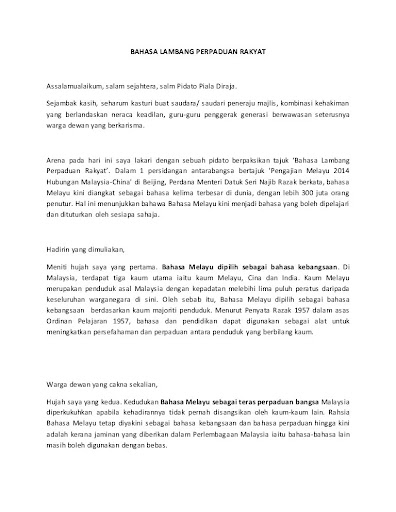 Skrip Pidato Teks Pidato Bahasa Melayu Sekolah Rendah / Skrip Pidato Memartabatkan Bahasa Melayu
